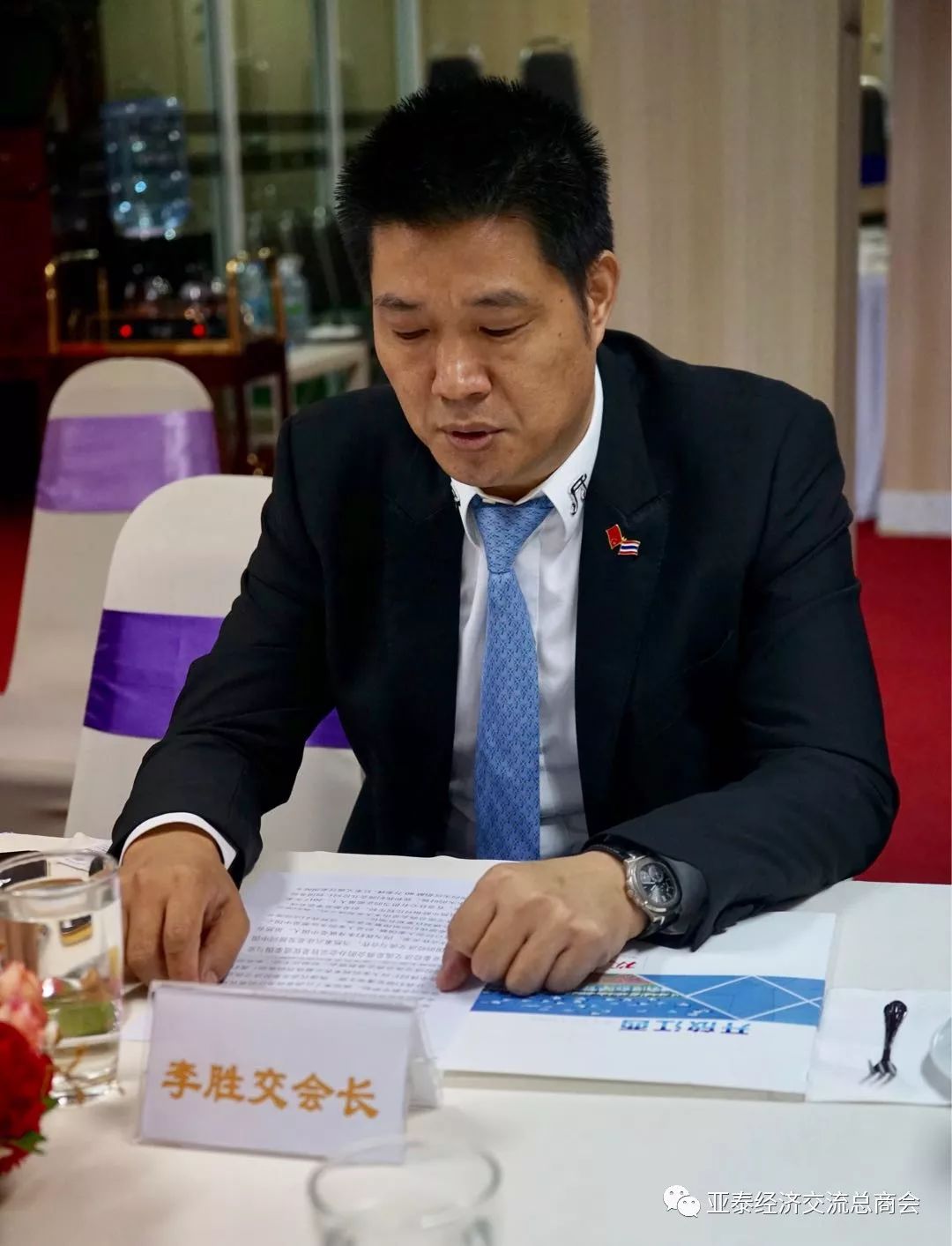 亚泰经济交流总商会是由本人发起成立的,我们商会的成员虽然年龄相对比较年轻,但是都是事业有成,作风正派、有责任心有担当的正能量人士。2017年泰国遭遇水灾的时候,我和我们商会几位同仁到国务院面见总理向灾区捐献80万泰铢,后来又通过泰国陆军总署,也就是现在我们的名誉顾问安那上将,时任陆军总署办公室主任的安排,向灾区民众捐献了价值150万的物资。与在2018年7月5日在普吉发生的造成我们47位同胞遇难的沉船事件,我和我会的同仁也捐款超过70万给志愿者去接待和帮助遇难同胞家属办理各种手续。