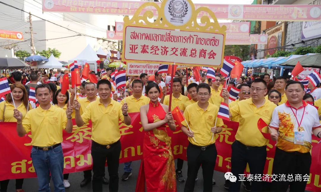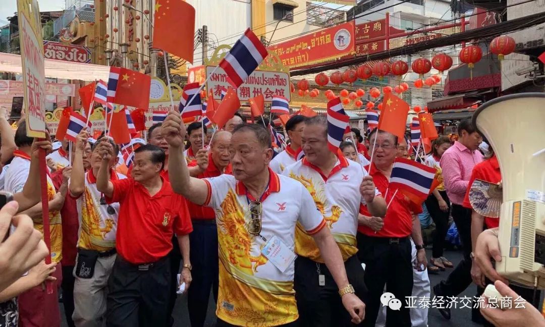 李胜交会长挥舞泰中国旗参加游行庆典活动