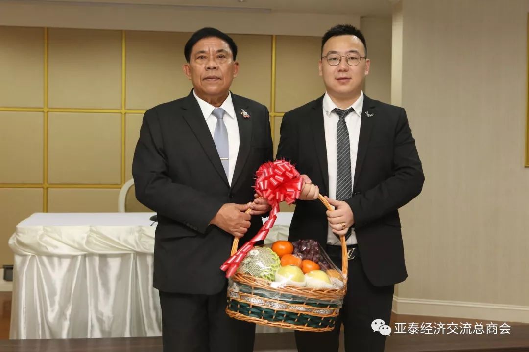 亚泰经济交流总商会孙凯副会长向曼谷市市长阿萨维•康蒙上将赠送果篮