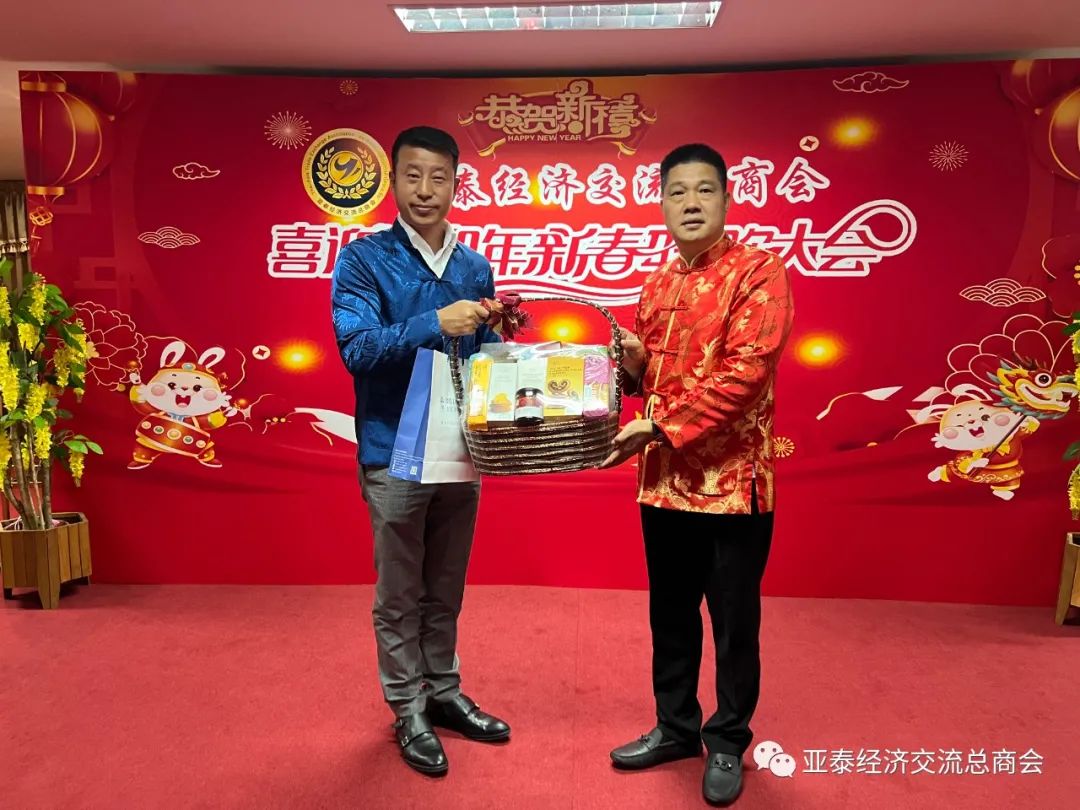 在宾主亲切交流中了解到,这些为传承中华文化,常年兢兢业业奔波在侨团活动采访一线的新闻工作者们都年事已高,大多数已年过古稀、有好几位已届耄耋之年,其中年纪最大的竟然已达89岁仍不肯退休颐养天年。老吾老以及人之老,看到他们的敬业精神,亚泰同仁们敬佩之心油然而生。为表示对他们辛勤工作的支持和鼓励,亚泰经济交流总商会以商会的名义向每一位莅访的新闻工作者送上4000铢新年利是包及一箱大吉并祝福他们新年工作顺利、事业进步!