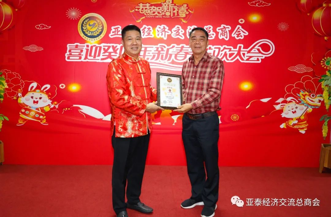 塔纳帕上将、李胜交会长、陈锦潮执行会长、常务副会长郑友民一同为抽中奖品的理事颁奖 随后,李胜交会长为徐位林顾问及最近新加入商会的冯亮理事、蔡锋理事颁发了聘请书并宣布邀请泰国大拓律师事务所创始人史大佗律师担任本会法律顾问,让亚泰大家庭不断发展壮大,越来越好!
