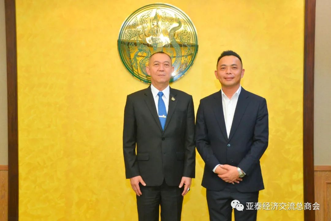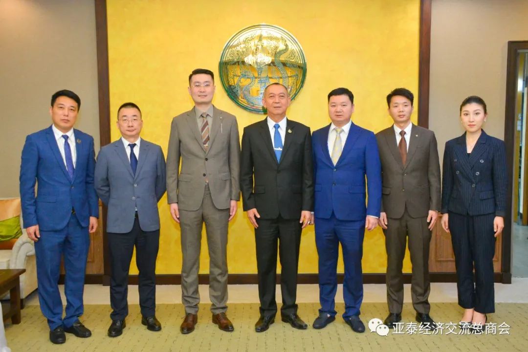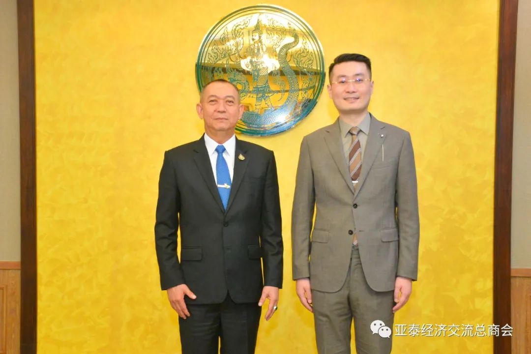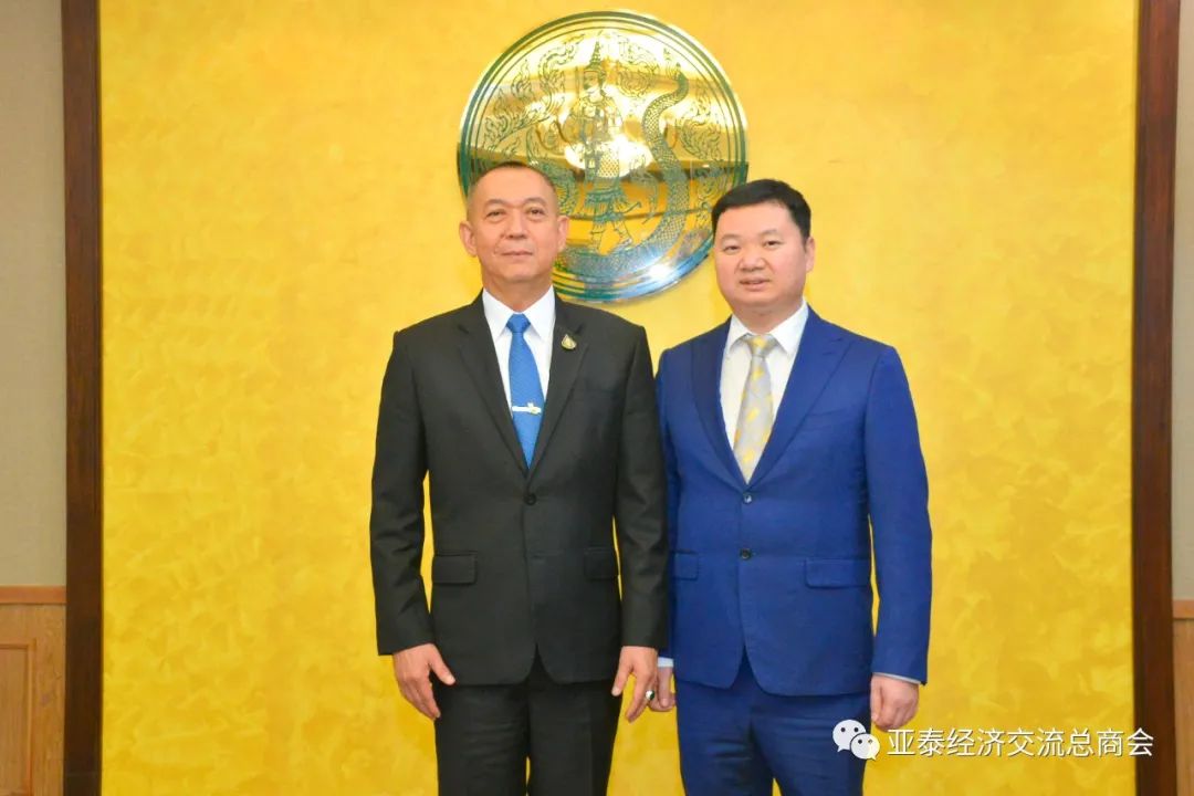 2023年3月9日(周四)下午1时,亚泰经济交流总商会会长、泰国金链花集团董事长李胜交先生偕同中管世纪集团董事长吴文辉、河南建设产业投资有限公司(以下简称产投公司)董事长李青原一行前往泰国农业与合作社部,拜访查霖猜·席翁部长,洽谈关于中泰农副产品进出口贸易及冷链物流免税前置仓等业务。在查霖猜部长见证下,金链花集团与产投公司就RCEP进出口贸易业务正式签署合约。