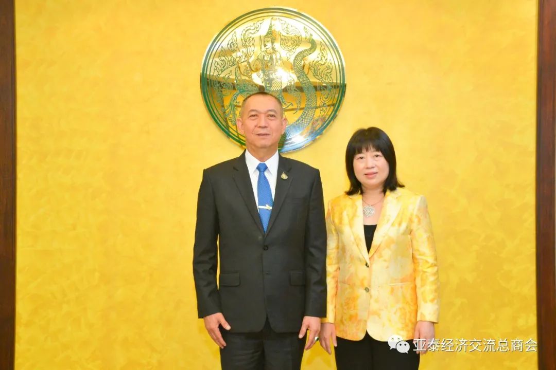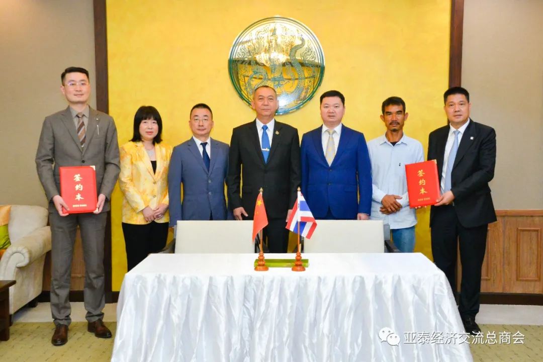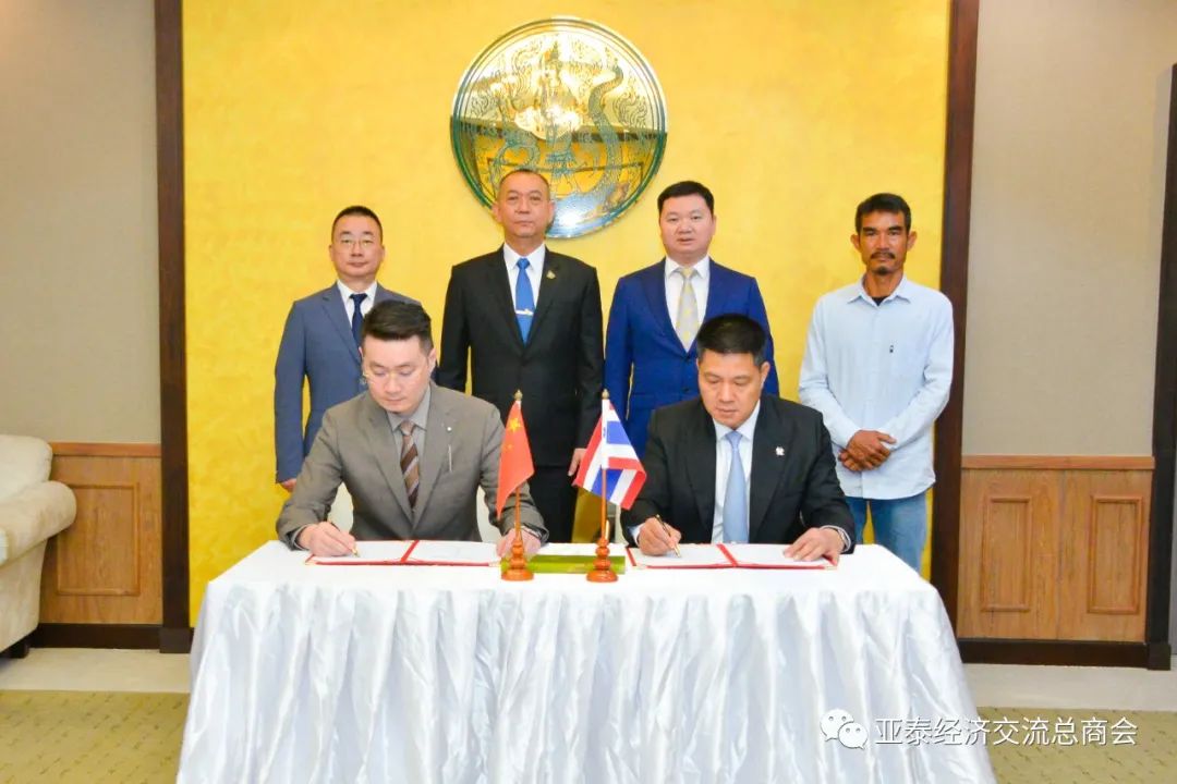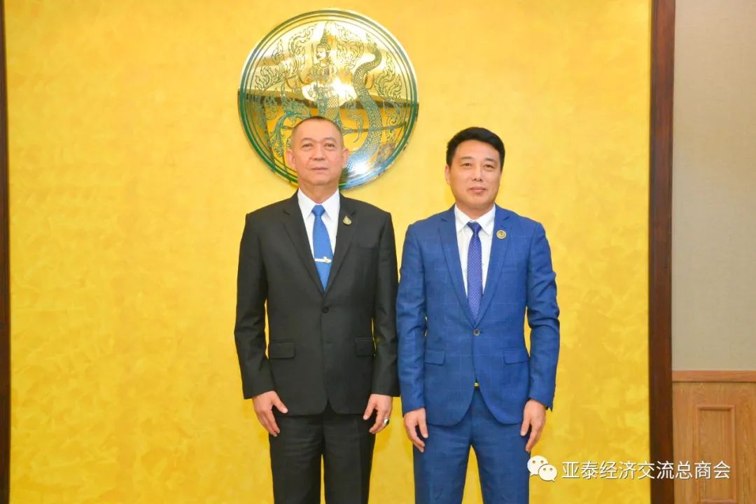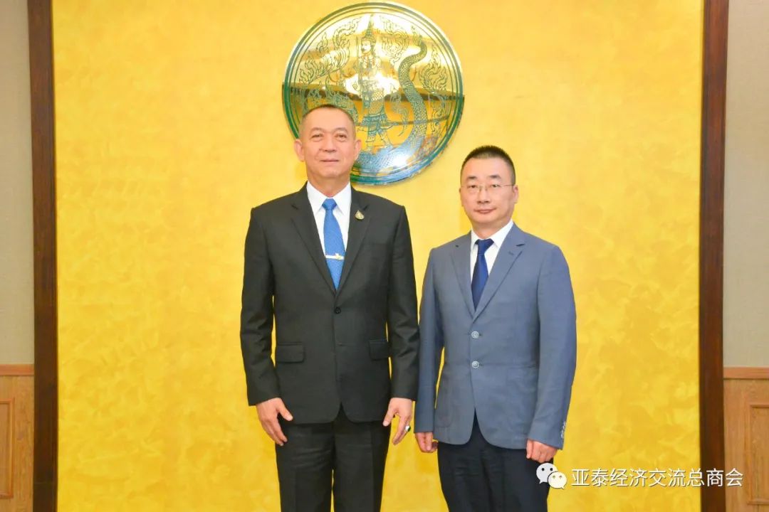 2023年3月9日(周四)下午1时,亚泰经济交流总商会会长、泰国金链花集团董事长李胜交先生偕同中管世纪集团董事长吴文辉、河南建设产业投资有限公司(以下简称产投公司)董事长李青原一行前往泰国农业与合作社部,拜访查霖猜·席翁部长,洽谈关于中泰农副产品进出口贸易及冷链物流免税前置仓等业务。在查霖猜部长见证下,金链花集团与产投公司就RCEP进出口贸易业务正式签署合约。