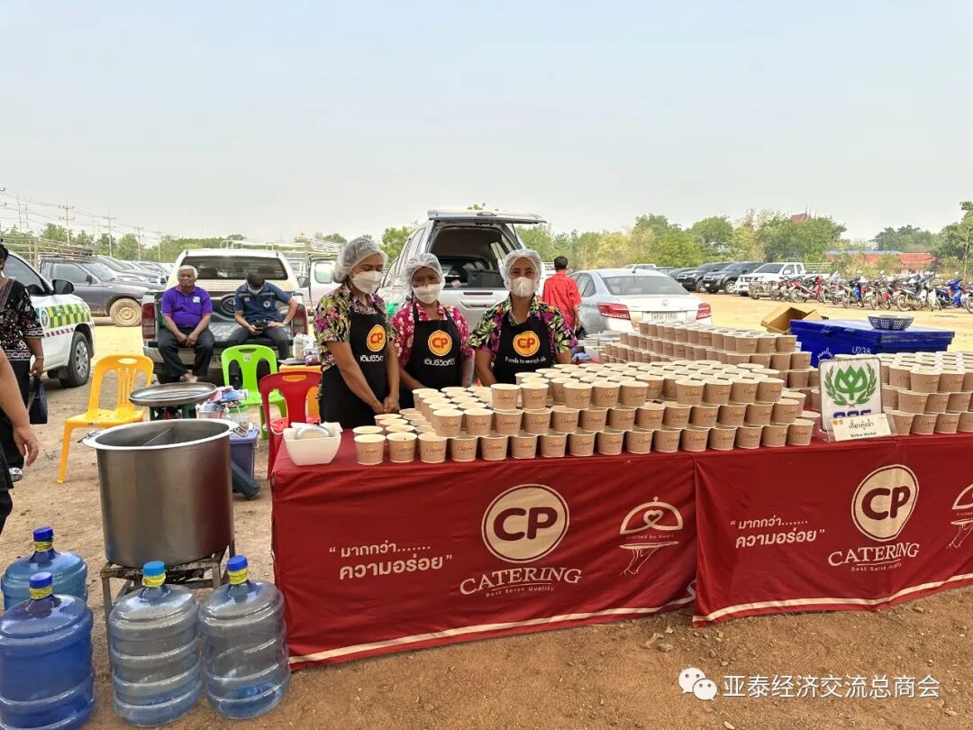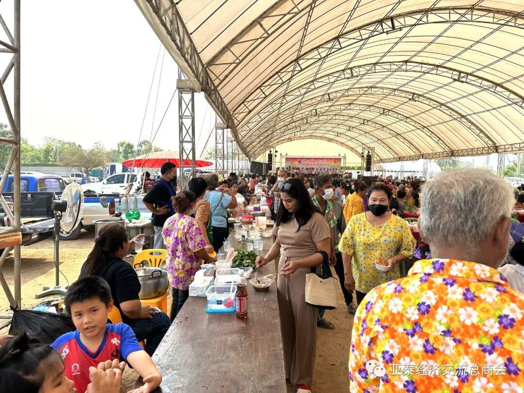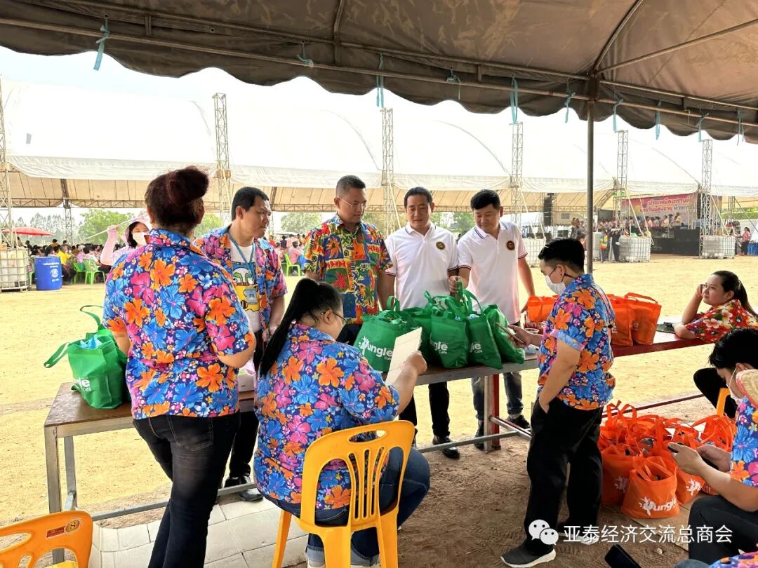 4月12日上午9时,亚泰商会代表抵达北碧府惠卡昭县PTT加油站旁边的庆祝活动举办场地,受到塔纳帕上将的热情接待。