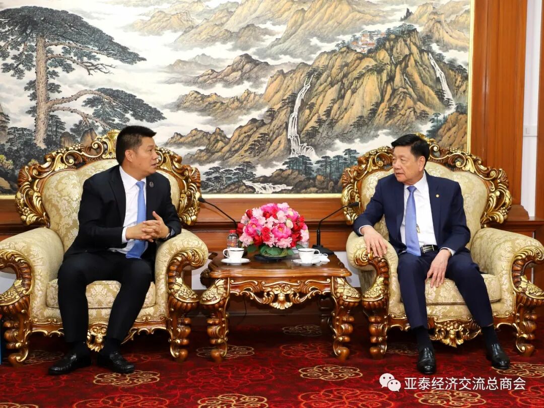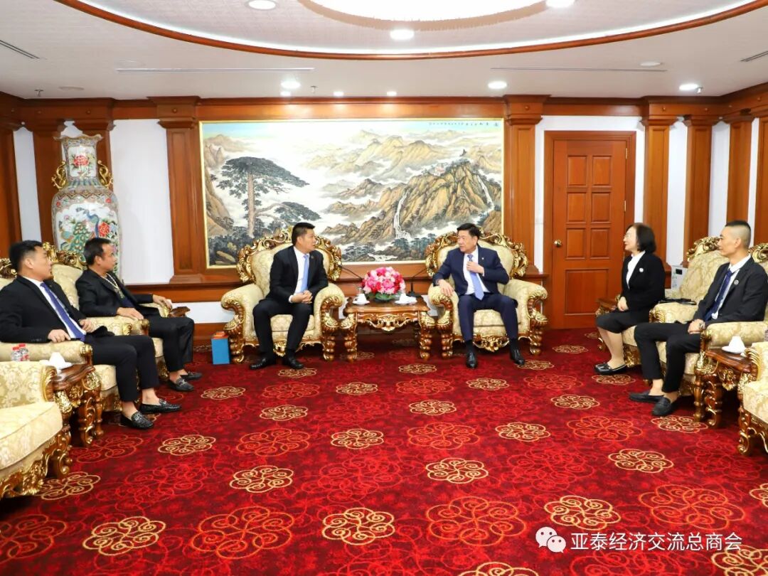 7月25日下午两点,亚泰经济交流总商会李胜交会长率同副会长刘瑛、助理会长甄宗华、所慧元以及会务顾问郑友民一行赴泰国中华总商会,拜会该会主席林楚钦博士,受到林主席假会客厅热情接待,宾主亲切交流座谈。