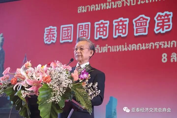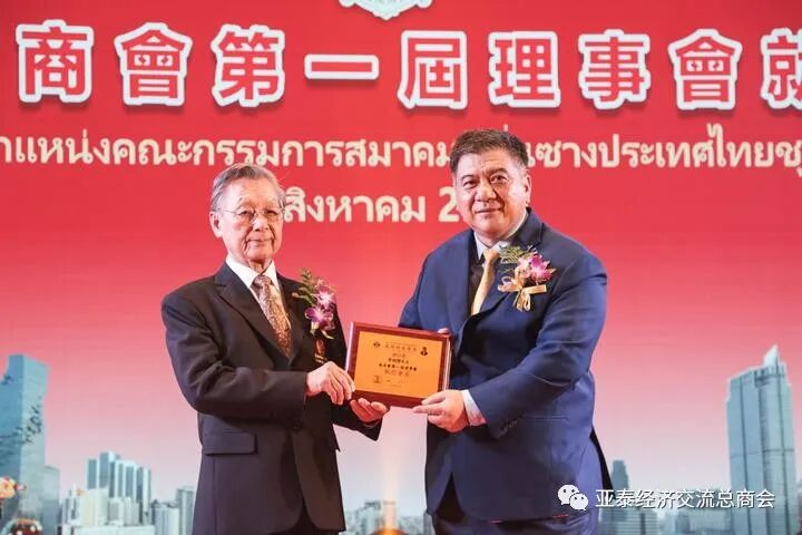 大会主席、泰国第20任总理、前国会主席川·立派阁下为泰国闽商商会会长蔡孝兴颁发请任书