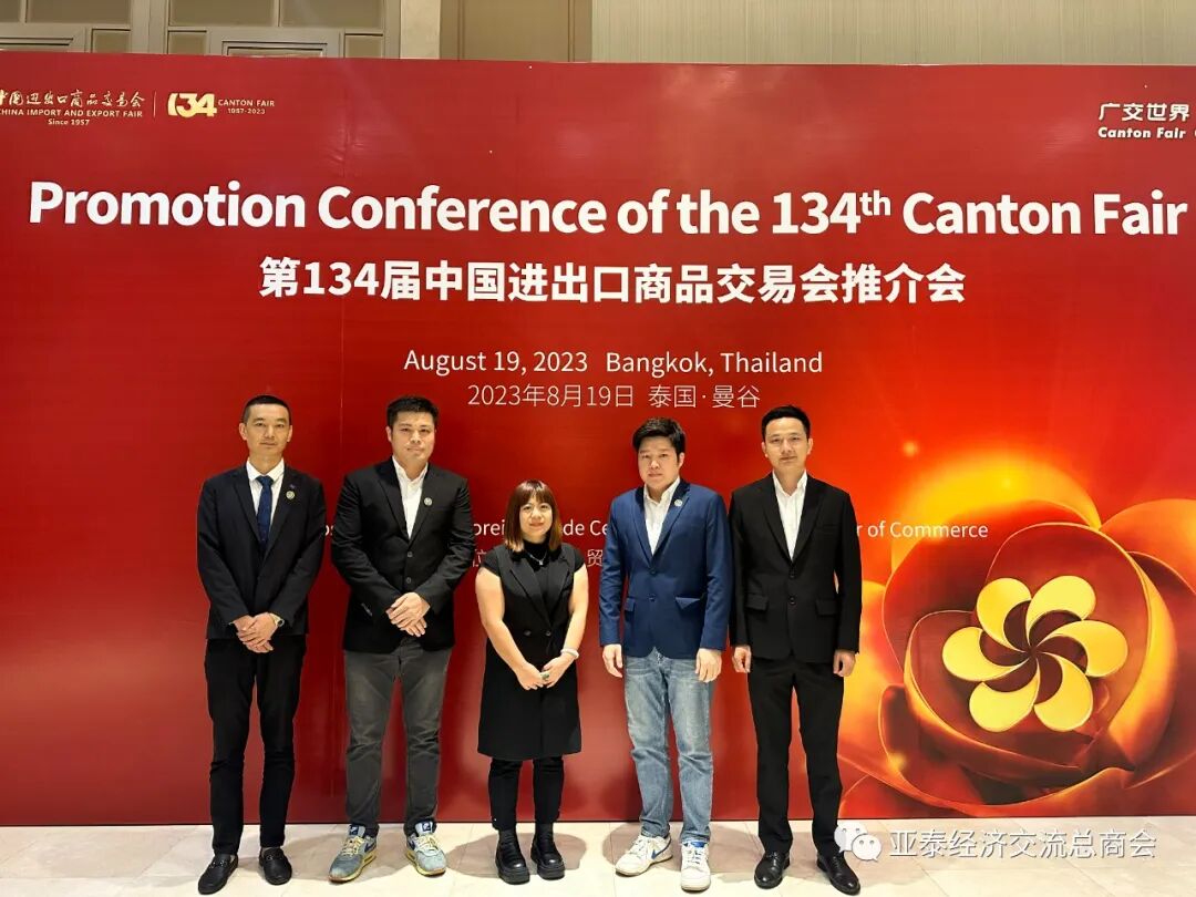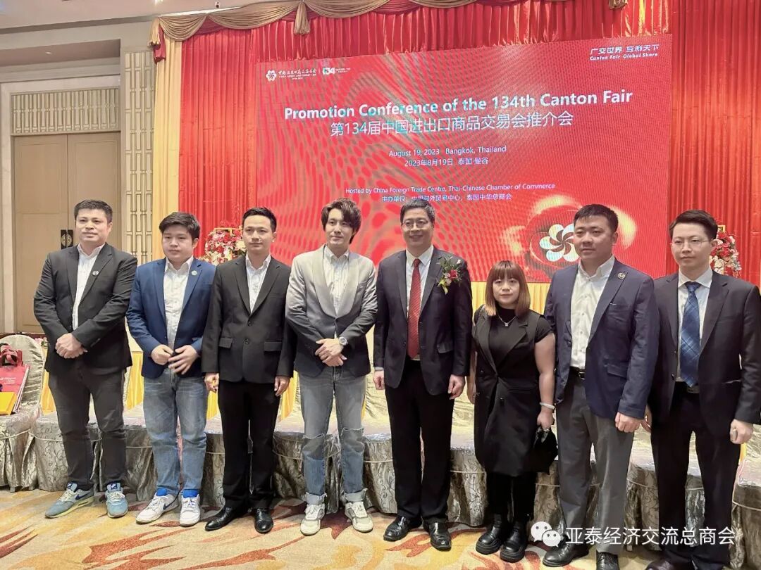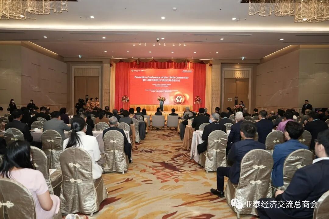 由泰国中华总商会暨中国对外贸易中心联合举办的“第134届中国进出口商品交易会泰国推介会”于8月19日下午在泰国中华总商会大厦九楼光华堂隆重举行。中国驻泰国大使馆经济商务处参赞张潇潇、泰国商业部国际贸易促进厅副司长Mrs.Arada Fuangtong、泰国中华总商会主席林楚钦、中国对外贸易中心副主任张思洪、泰国潮州会馆代主席萧俊杰、泰国中华总商会副主席兼各行业公会执行主任李桂雄、泰国中华总商会副主席刘秉青、泰华各姓宗亲总会联合会名誉主席沈木盛、泰华各姓宗亲总会联合会副主席周隆光、泰国中华总商会副秘书长林嘉南等主要领导及泰国中华总商会暨各兴业公会联谊会成员单位代表、企业界精英代表等约150人出席大会。
