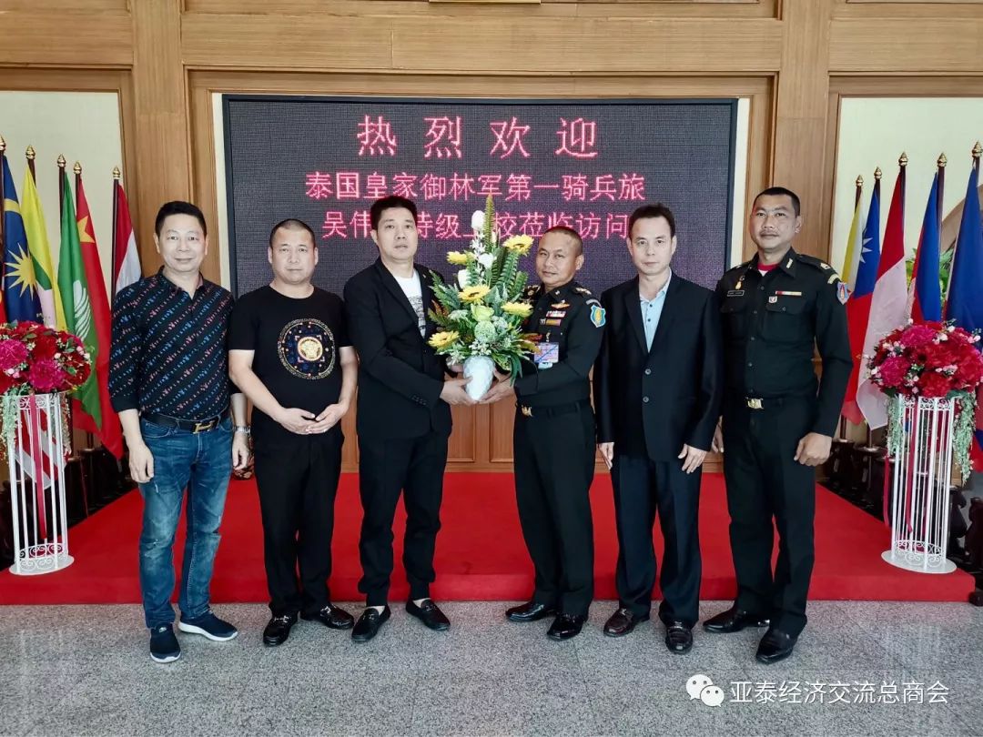泰国皇家御林军第一骑兵旅副总指挥威拉猜(吴伟龙)陆军特级上校今天(3月14日)下午二时偕其随员莅临亚泰经济交流总商会访问,向李胜交会长领导创立亚泰经济交流总商会表示热烈祝贺及大力支持。