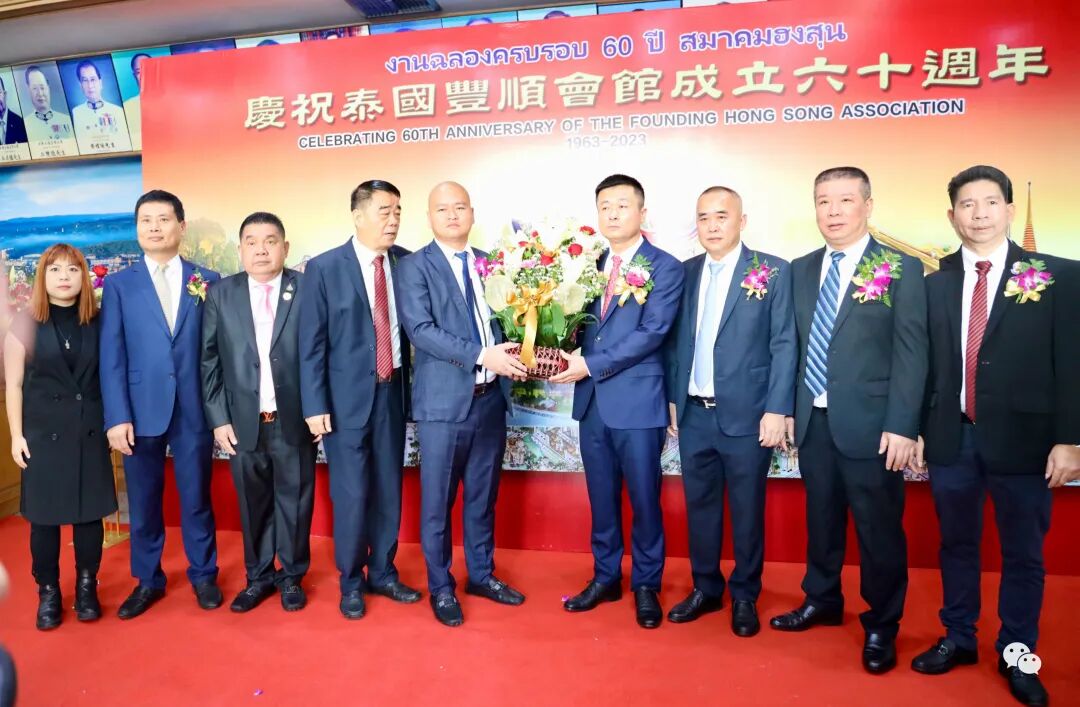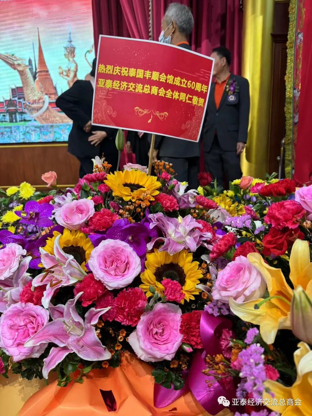 泰国丰顺会馆成立60周年庆典,于2023年11月26日(星期天)上午,在该会丰华堂隆重举行。大会主席黄承金永远名誉主席致欢迎词,并与主席徐永添,中国驻泰国大使馆刘敬师参赞,中国丰顺县委书记张志锋,泰国中华总商会主席林楚钦、潮州会馆主席徐惠深、各姓宗亲总会联合会主席黄汉良、客家总会理事长黄建华,该会永远名誉主席冯世纪、徐善述、丁文江、徐瑞营一起,共同主持庆典启动仪式。