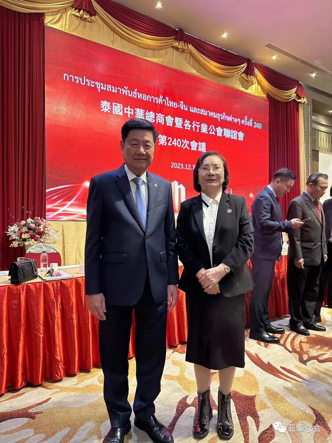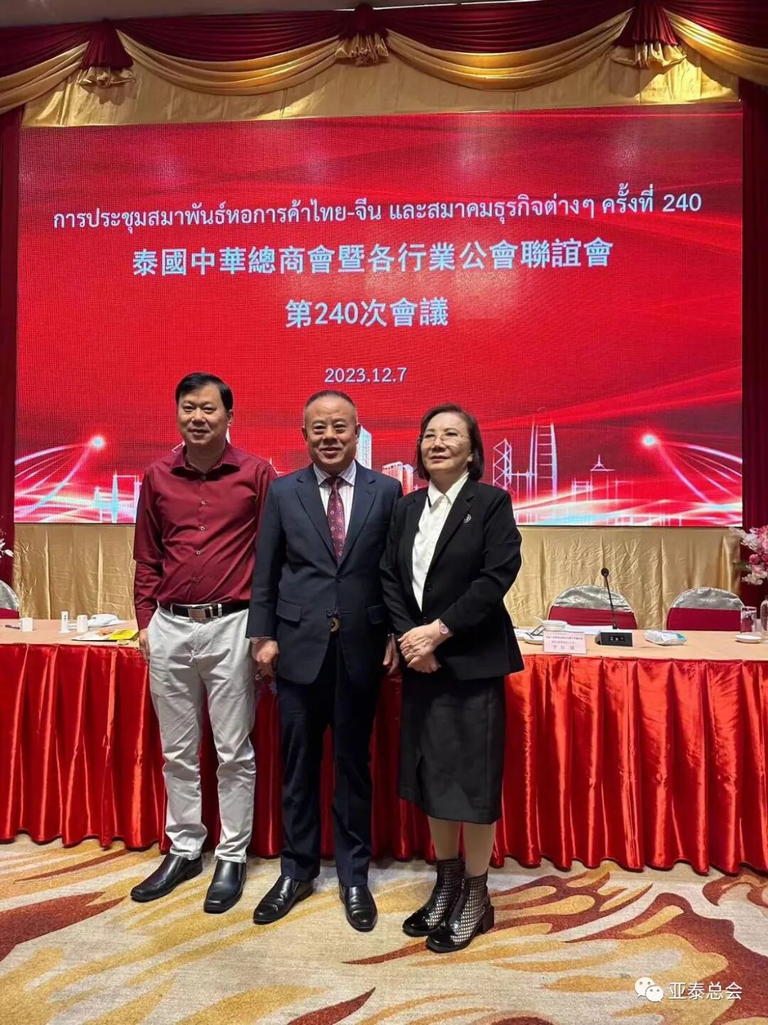 泰国中华总商会暨各行业公会联谊会第240次会议,于2023年12月7日(星期四)上午10时,在中总光华堂举行。受亚泰经济交流总商会会长李胜交委派,副会长刘瑛偕慈善部副主任赵德能,总干事陈征出席会议。与各商、协会首长、代表欢聚一堂,共策联谊会会务发展。