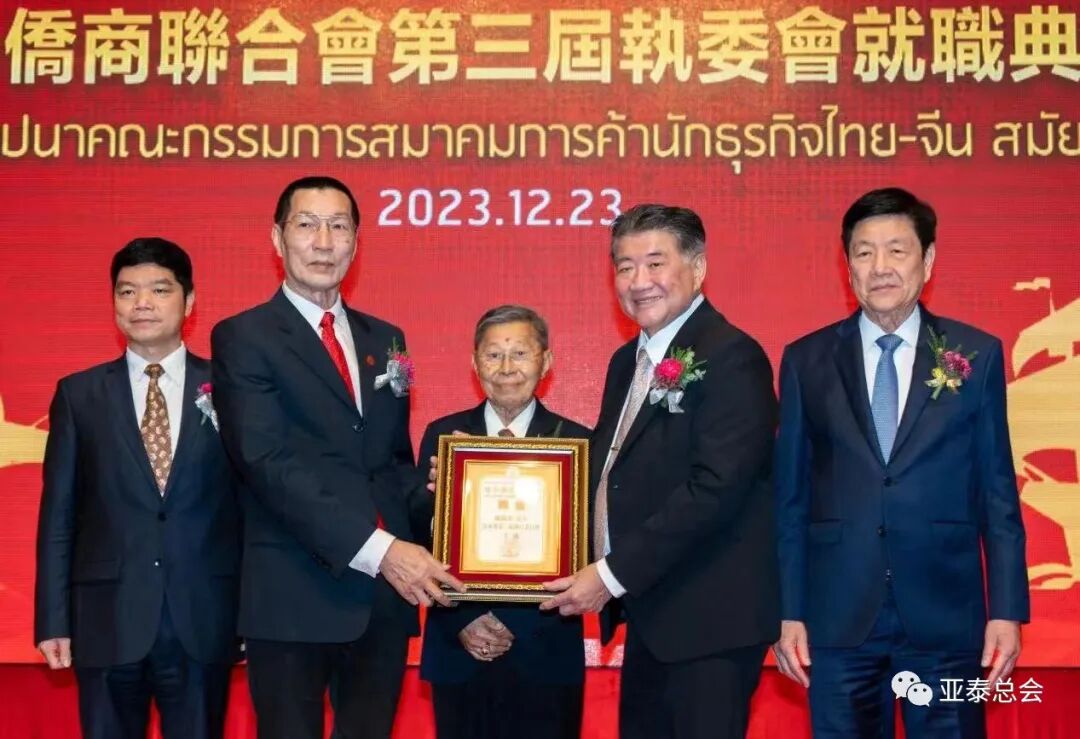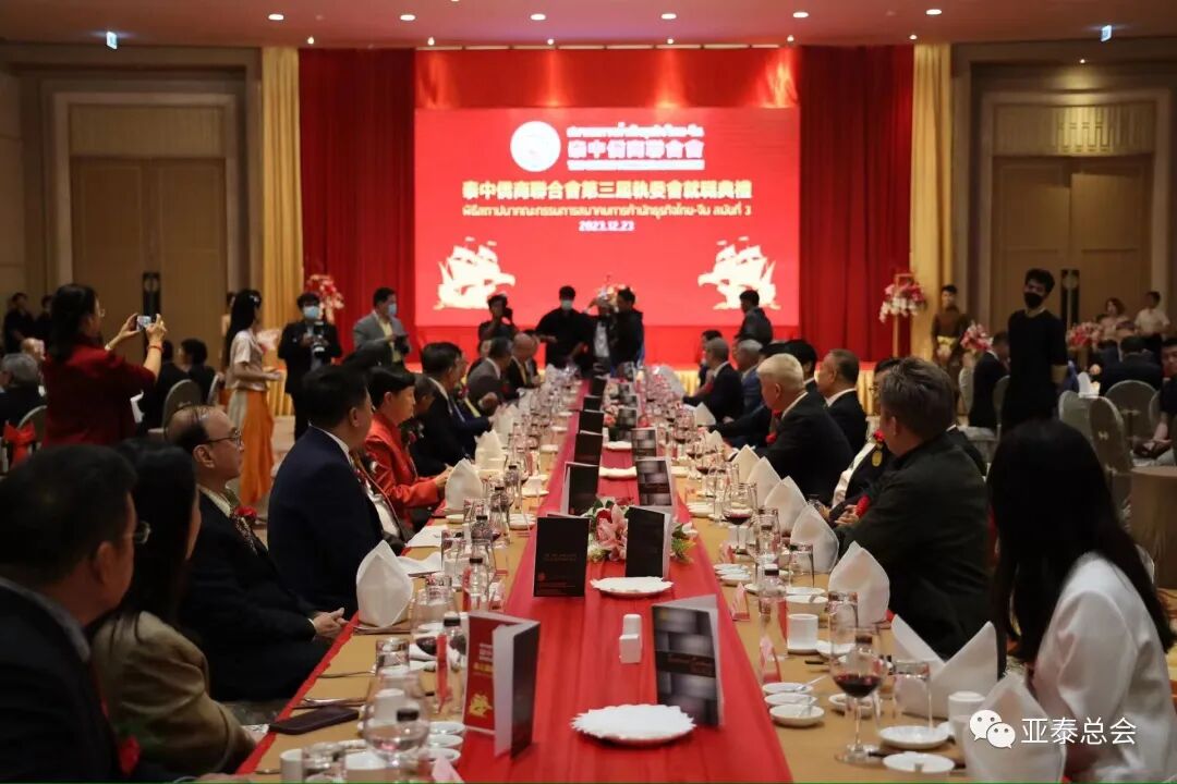 泰中侨商联合会第三届执委会就职典礼,于2023年12月23日(星期六)晚6时,假泰国中华总商会光华堂隆重举行。邝锦荣博士蝉联第三届主席,泰国国务院副总理兼商业部长普坦·威乍耶猜阁下、阿伊瓦特•查克潘亲王、中华人民共和国驻泰国大使馆刘敬师侨务参赞、泰国中华总商会林楚钦主席共同见证并致贺词。泰国政要、侨领、嘉宾、商界精英、社会名流、代表数百位,亚泰经济交流总商会副会长孙凯偕总干事陈征应邀出席;受到泰中侨商联合会和东部经济走廊(EEC)分会、清迈分会、青年委员会的执委、成员热烈欢迎。冠盖云集,圆满成功。