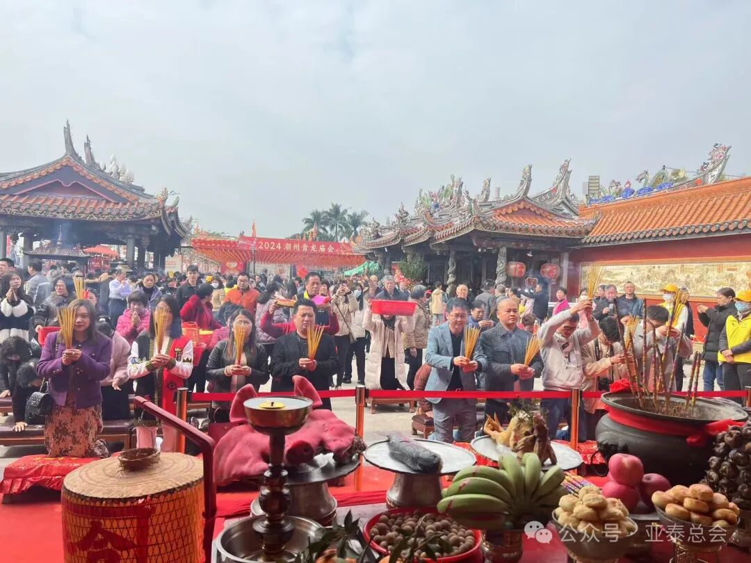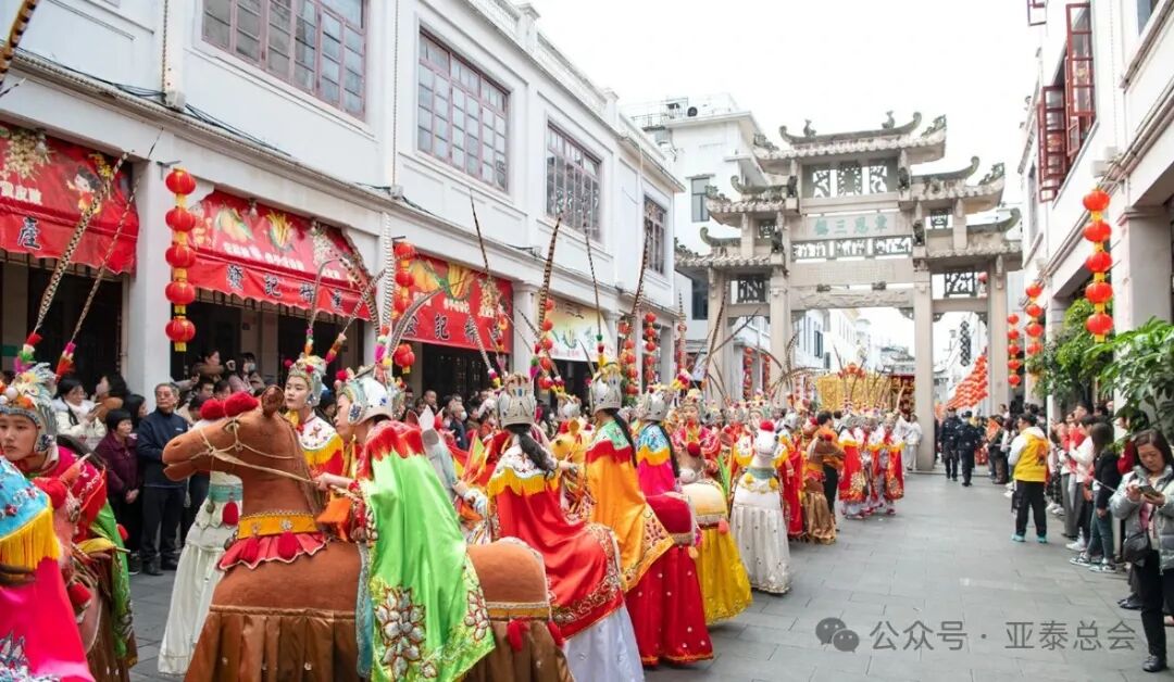 潮州规模最大、最具代表性的民俗活动——2024“潮州青龙庙会”非遗文化巡游活动,于2024年3月4日,在中国广东省潮州市举行。亚泰经济交流总商会执行会长陈锦潮、常务副会长邱俊杰、顾问陈永亮应邀参加,在潮州镇海楼前贵宾观礼席观赏巡游活动。潮汕布马舞、普宁英歌舞、蜈蚣舞、舞龙、舞狮、大锣鼓、潮州音乐等精彩表演,让沿途的海內外嘉宾、市民、游客近距离感受到了非遗民俗文化的魅力。
