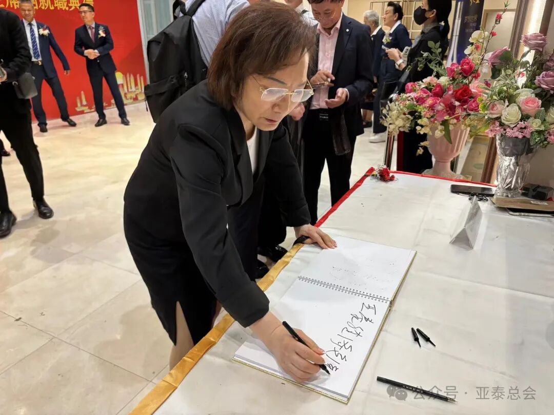 泰国上议院第二副议长素帕猜·颂查龙阁下主持仪式,授印信予郑庙金主席接领。泰国中华总商会主席林楚钦、副主席李桂雄,泰国中国和平统一促进总会会长王志民,泰国中华总商会名誉主席郑岳龙,泰国福建社团联谊总会主席苏承智共同见证。