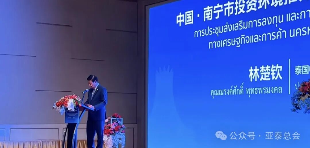南宁市委书记农生文致欢迎词,表示中泰两国有着千年友好交往历史,“中泰一家亲”深入人心;随着两国关系不断深化,泰国成为越来越多中国企业走出去的首选目的地。期待泰中携手合作,实现更高水准经济融合和联动发展,为构建更为紧密的中国—东盟命运共同体提供更多强劲动力。