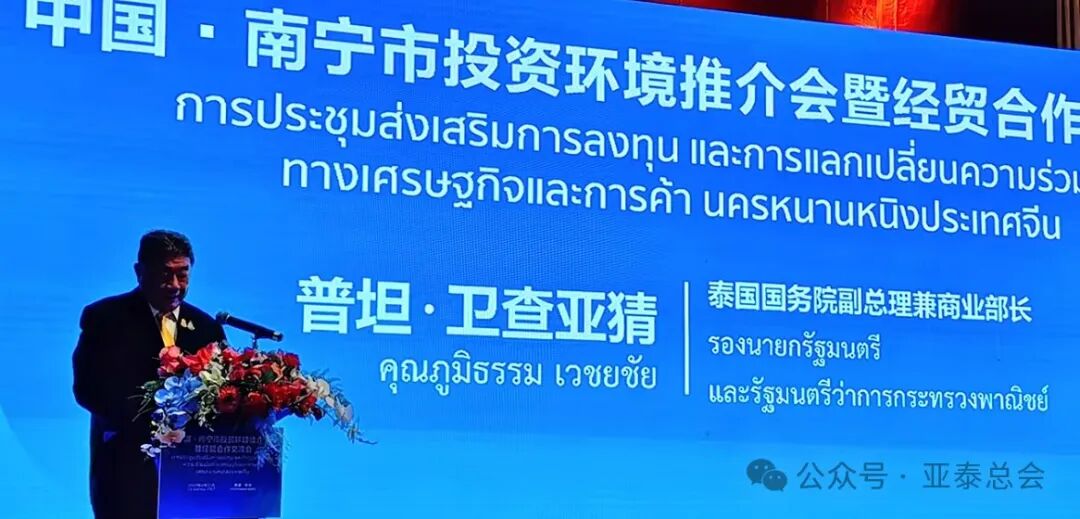 泰国副总理普坦南宁市委书记农生文中总林楚钦主席亚泰商会刘瑛副会长等出席