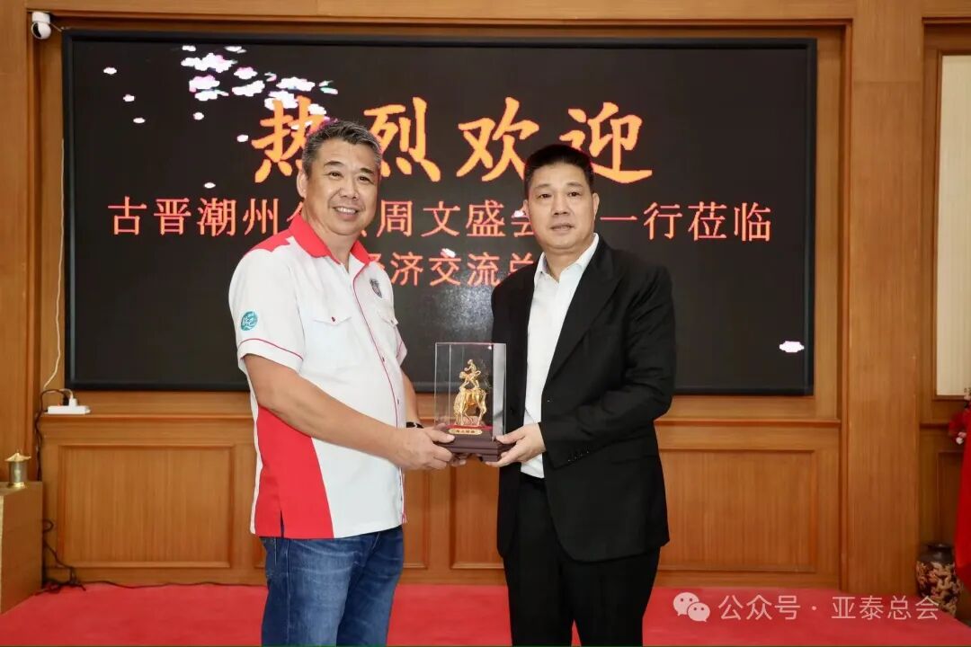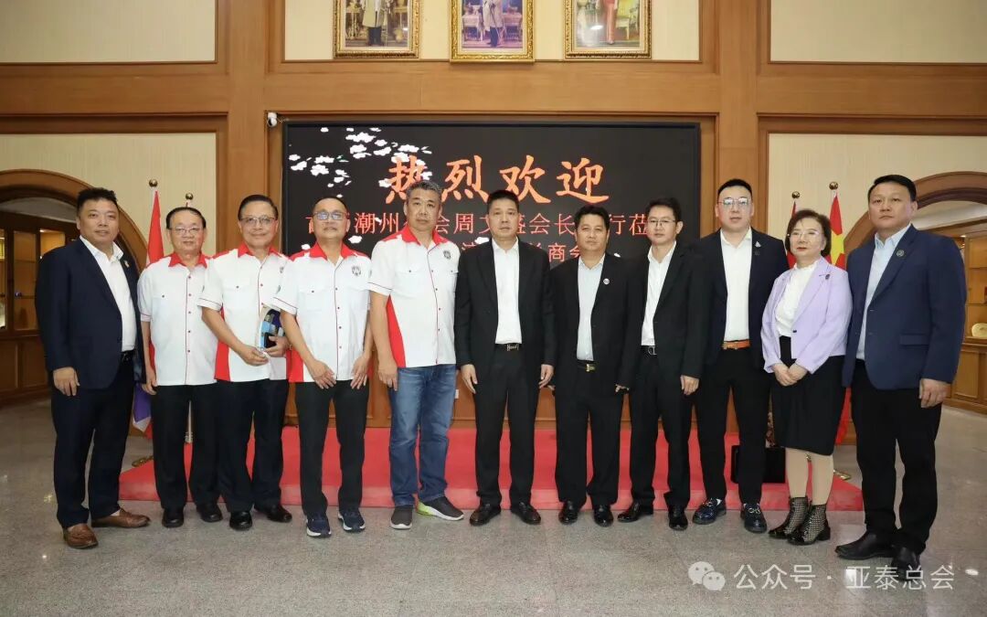 马来西亚古晋潮州公会周文盛会长暨夫人田玲玲一行,于2024年4月26日下午莅临亚泰经济交流总商会拜访,受到商会 李胜交会长偕陈锦潮执行会长,副会长 孙凯、刘 瑛、许明杰等热烈欢迎,双方进行了亲切座谈交流。