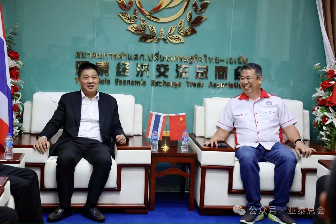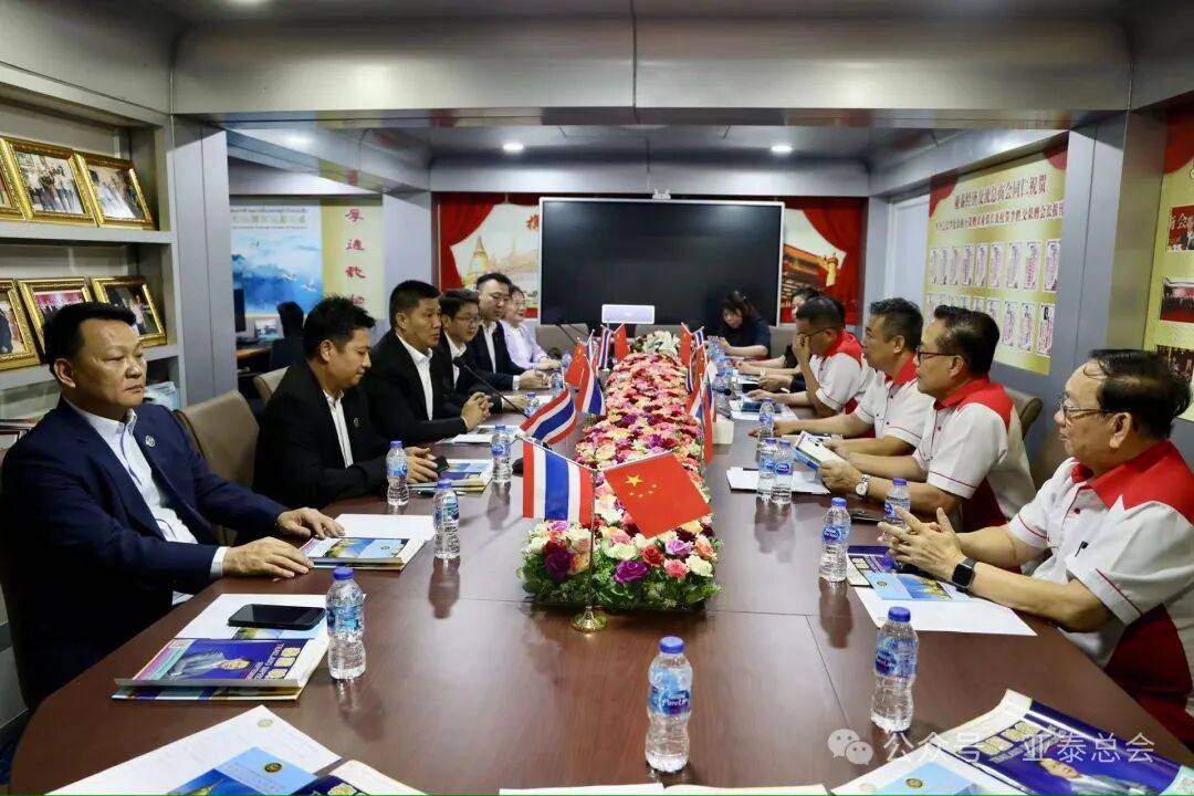 李胜交会长代表商会全体理事欢迎周文盛会长一行莅临泰国访问,简介亚泰商会成立五年来,会务运作发展概况;希望通过此次会见座谈,双方加强联络感情,共同为推动泰马友好及经贸合作交流作出积极努力。顺祝该团旅途平安愉快,访问取得圆满成功。