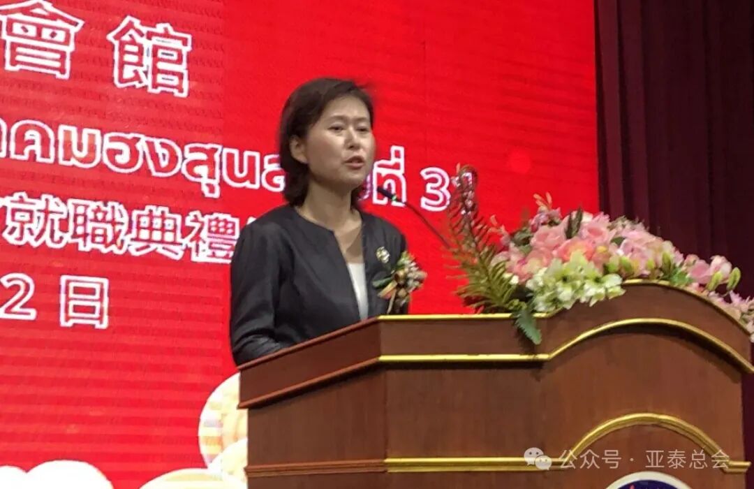 大会主席黄承金首先致辞,对所有嘉宾的莅临表示感谢,并对丰顺会馆的历史与未来发展进行了展望,强调了团结协作的重要性。中国驻泰大使馆领侨处副主任童艳随后发表贺词,赞扬丰顺会馆在促进中泰文化交流和经济合作中作出的贡献,并预祝新一届执委会在未来取得更大成就。