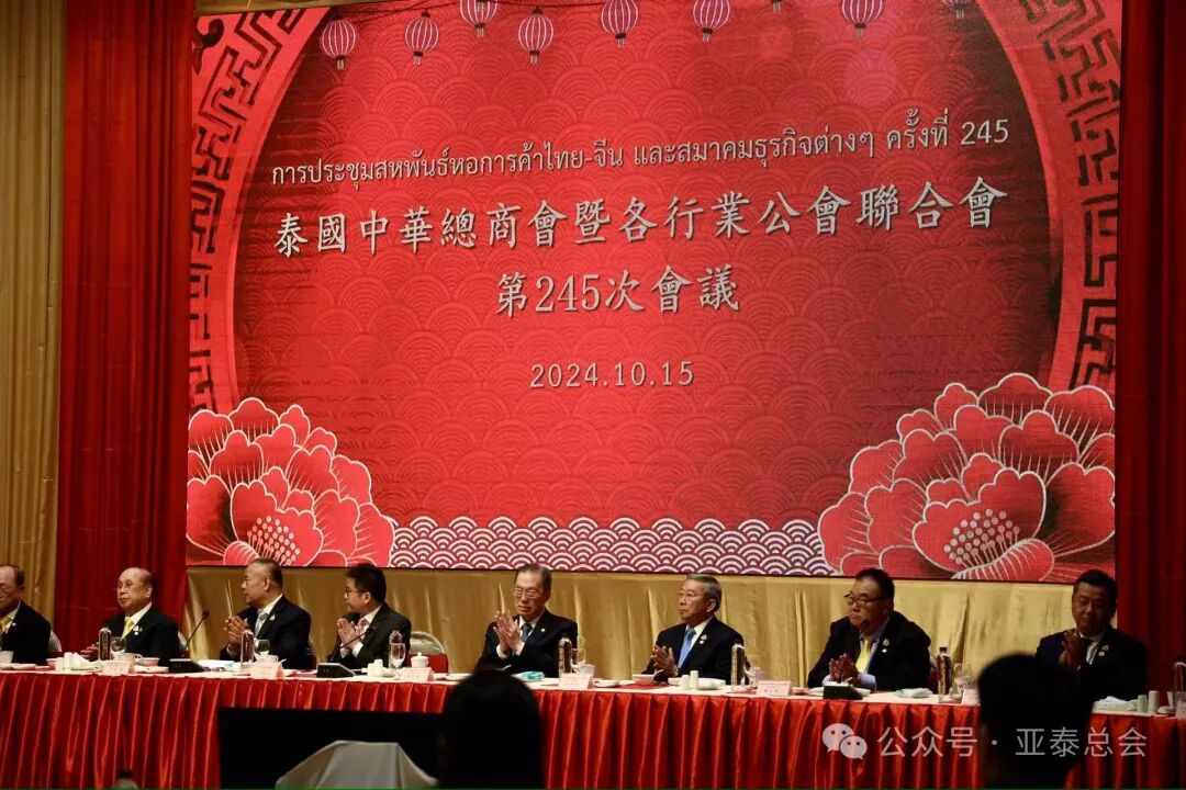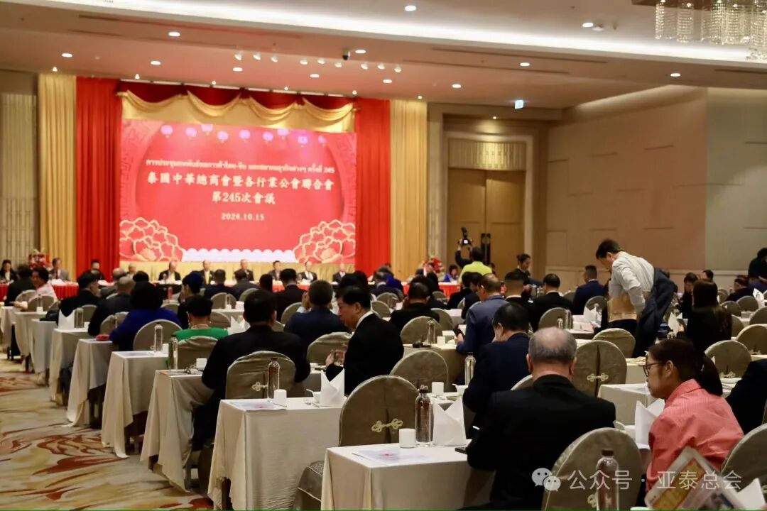 2024年10月15日,泰国中华总商会暨各行业公会联合会第245次会议在泰国中华总商会光华堂隆重召开,吸引了泰国各行业的精英和企业家们齐聚一堂。亚泰经济交流总商会副会长刘瑛和总干事陈征代表本会出席了此次会议。
