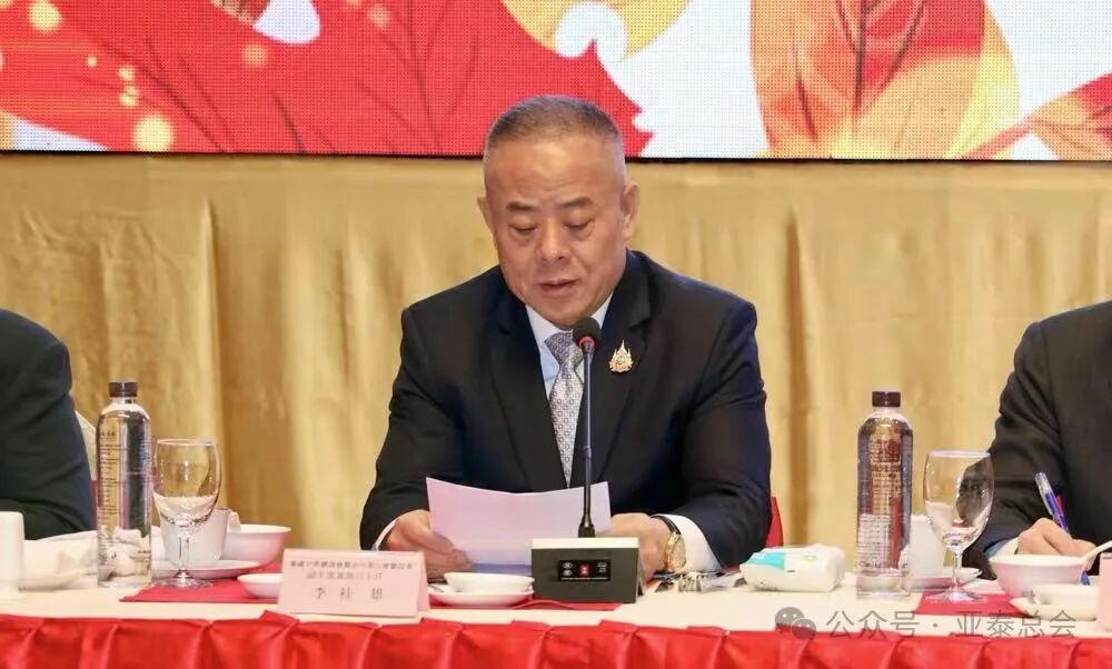 会议在庄重的氛围中拉开帷幕,首先介绍了与会的主要领导和联合作东单位的首长。随后,泰国中华总商会暨各行业公会联合会副主席兼执行主任李桂雄先生发表了热情洋溢的致辞。他表示,商会作为泰国华人商界的重要枢纽,将继续发挥桥梁作用,推动泰国华商在本地经济中的地位不断提升,同时积极促进泰中两国商贸往来的深入发展。