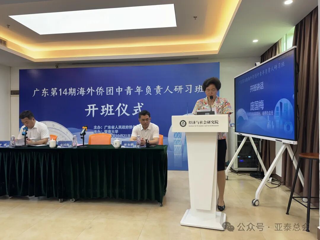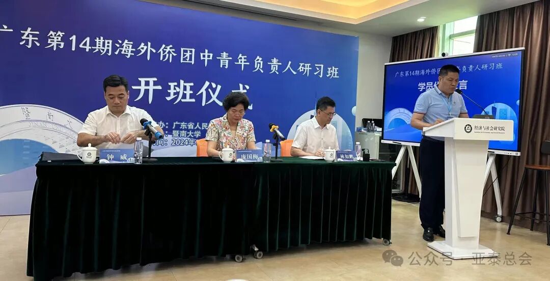 在开班仪式上,广东省委统战部副部长庞国梅、广东省外事办公室钟威处长以及暨南大学党委书记林如鹏等多位领导出席并讲话。他们介绍了广东省当前的发展情况,并强调了海外侨团在促进国际合作和文化传播中的重要作用。