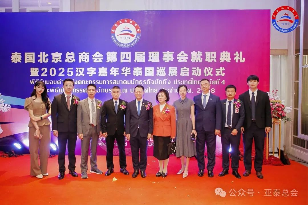 2025年8月23日,泰国北京总商会第四届理事会就职典礼暨2025汉字嘉年华泰国巡展启动仪式在曼谷泰国中华总商会光华堂隆重举行。亚泰经济交流总商会代表团应邀出席这一盛会,代表团由刘瑛副会长率领,王命云副秘书长、会长助理王菲、姚建宾常务理事、黄樟雄理事等共同参与。