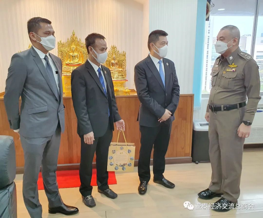 亿提蓬警中将与李胜交会长亲切交谈亿提蓬警中将感谢李胜交会长一行的到访和带来的祝福,同时也委托李会长转达他向亚泰经济交流总商会全体同仁的祝福,祝贺大家宋干节快乐、幸福安康、万事如意!