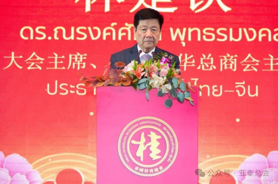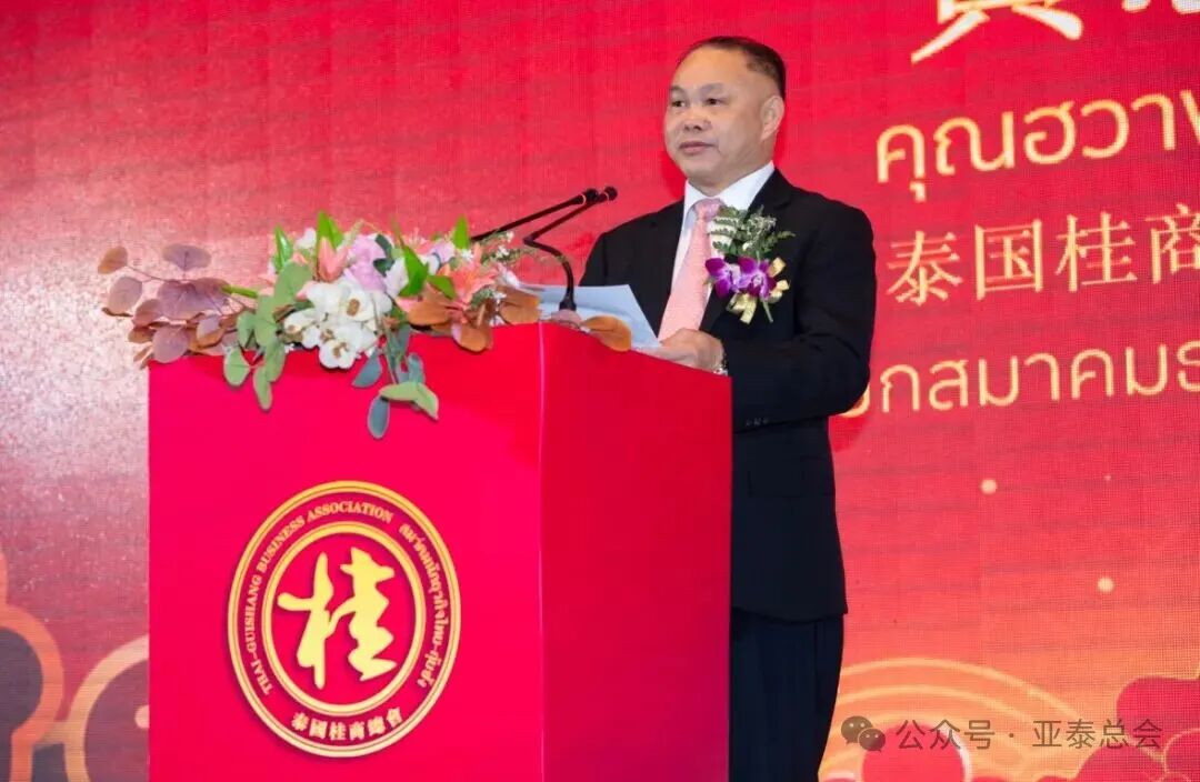 随后,泰国桂商总会会长黄志乾先生发表讲话,对到场嘉宾及各界友人表示衷心感谢,并表示将秉持“团结、创新、共荣”的宗旨,继续加强与各界商会的合作,为推动泰中经贸与文化交流贡献力量。