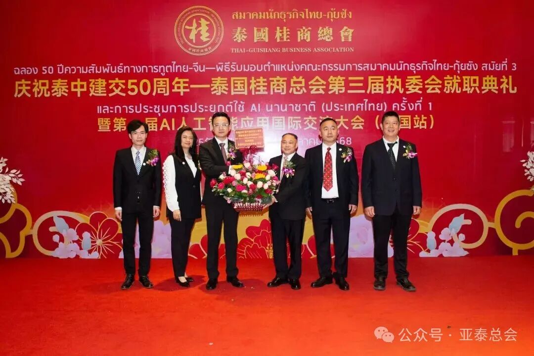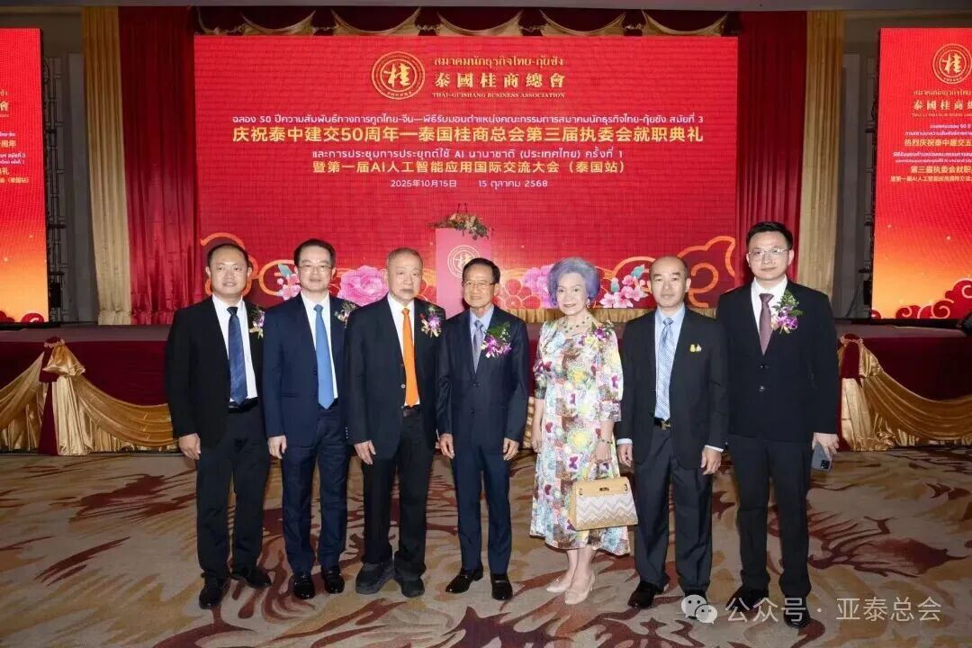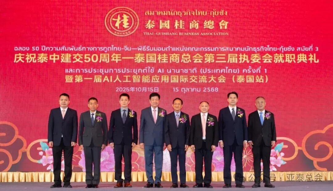 为庆祝泰中建交五十周年,进一步深化两国在经贸、人文及科技领域的交流合作,2025年10月15日(星期三)下午17时,“庆祝泰中建交五十周年·泰国桂商总会就职典礼暨第一届AI人工智能应用国际交流大会(泰国站)”在泰国中华总商会光华堂隆重举行。