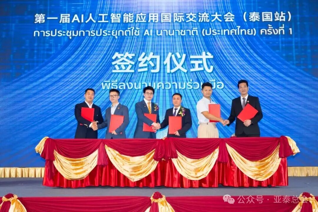 作为当日活动的重要环节,第一届AI人工智能应用国际交流大会(泰国站)同步举行签约仪式。来自中泰两国的科技创新企业、科研机构及投资代表共同参与,围绕AI在工业、教育、医疗、金融等领域的实际应用展开深入交流与合作。此次大会为中泰双方在高科技与数字经济领域的务实合作搭建了高层次平台,进一步促进了创新资源共享与产业协同发展。