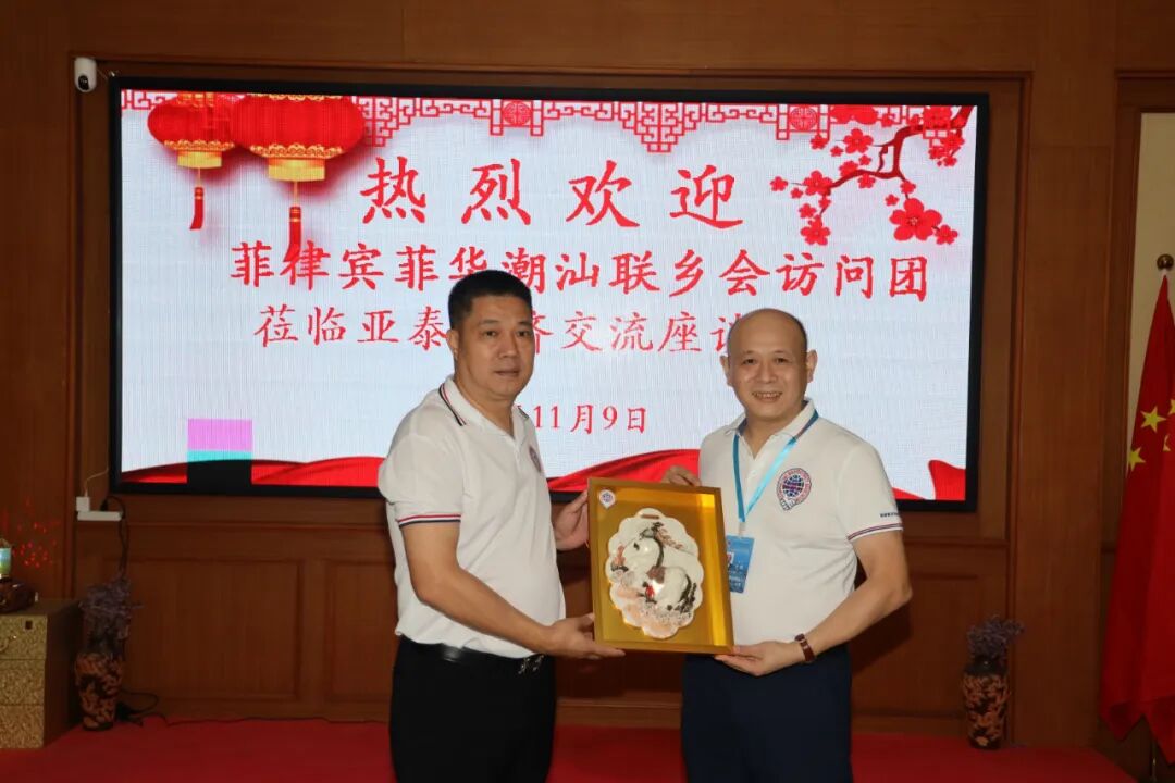 2025年11月9日下午,泰国曼谷洋溢着浓浓的潮汕乡情与热烈的合作氛围。亚泰经济交流总商会会所内高朋满座,由本会主办的 “菲华潮汕—亚泰经贸文化交流座谈会” 在此隆重举行。菲律宾菲华潮汕联乡会访问团一行十三人莅临拜访,两会精英齐聚一堂,共叙乡情友谊,共绘合作蓝图。