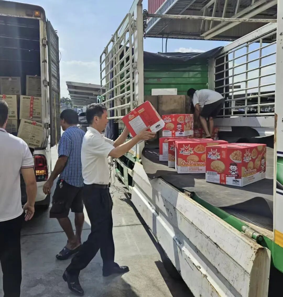 陈锦潮执行会长率商会同仁代表团亲赴合艾 将温暖与关怀送到灾区百姓手中。