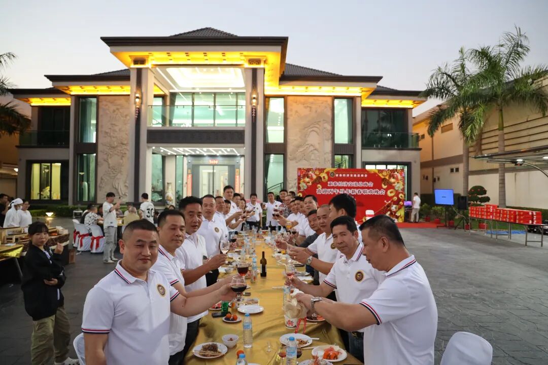 出席晚会的商会成员合影留念,场面温馨而充满喜悦