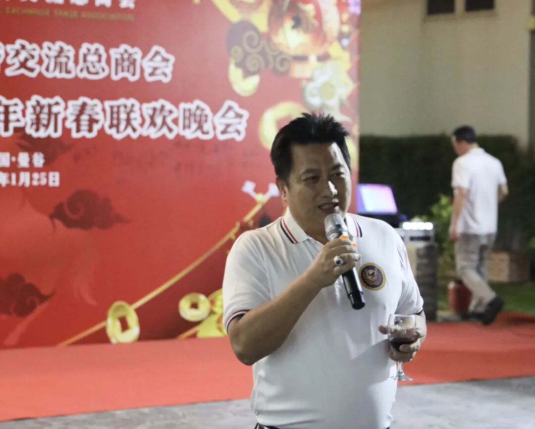 晚会由会长李胜交热情洋溢的致辞拉开帷幕。李会长表示:今晚能与大家欢聚一堂,倍感温馨与感动。衷心感谢各位领导、各位朋友长期以来对亚泰经济交流总商会的支持、信任与陪伴。一路走来,从初创到如今的不断发展壮大,离不开每一位会员的努力与奉献,更离不开泰国社会的包容与支持,以及中国各界朋友们的关心与帮助。