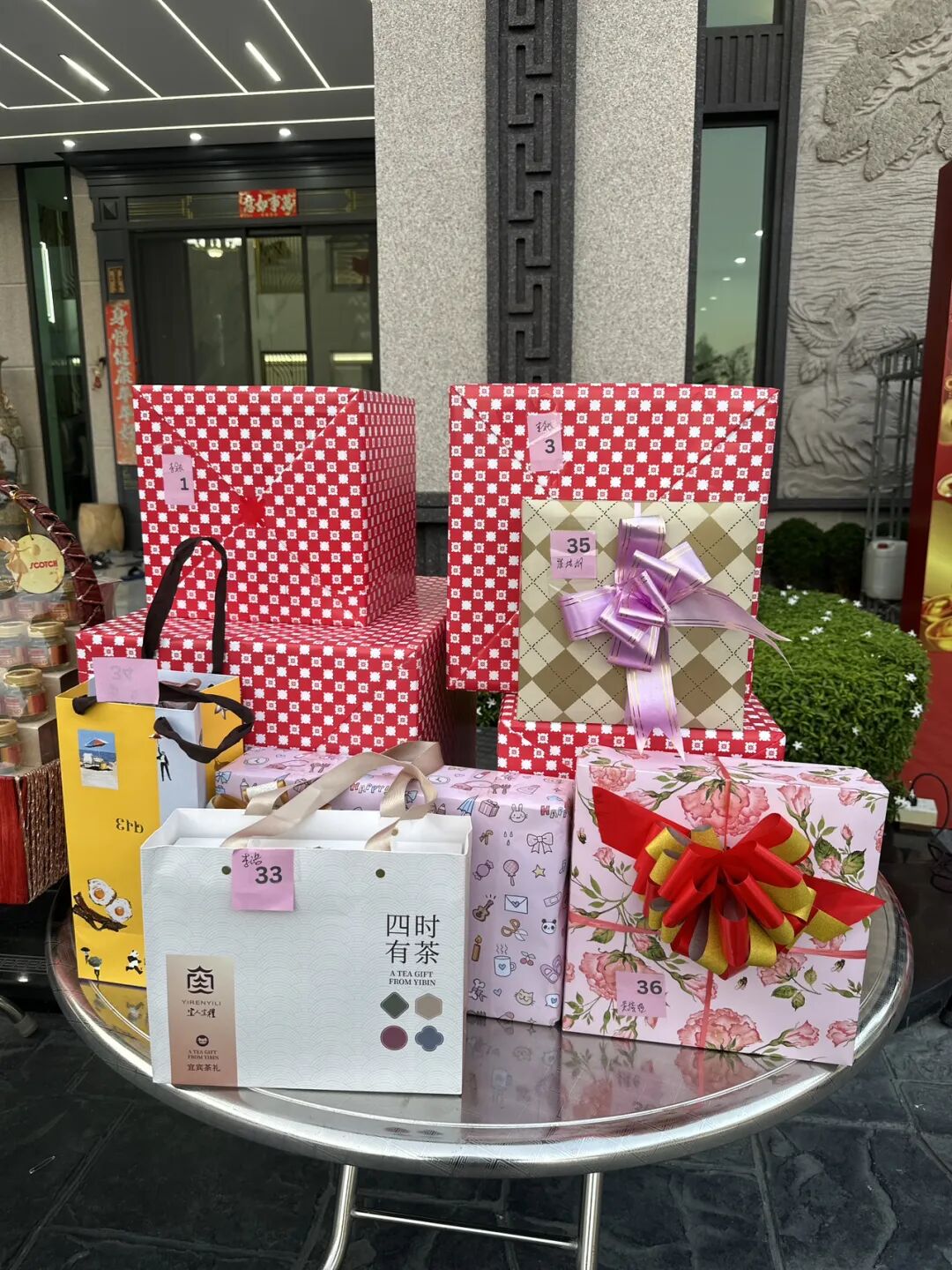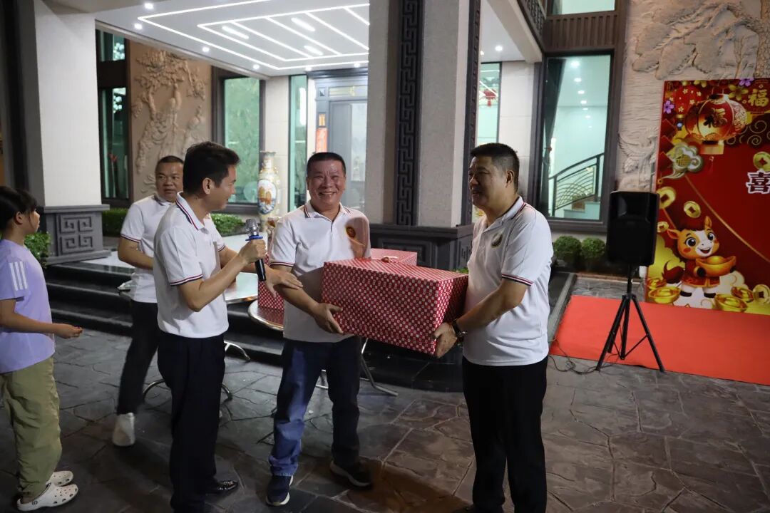 会长李胜交、常务副会长邱俊杰、会务顾问蔡润乐开心地互换礼物