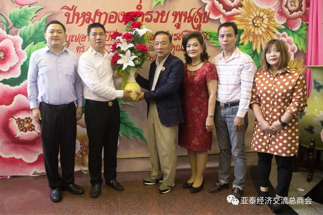 李胜交会长偕常务副会长郑友民,秘书长袁冰,副秘书长杨莉代表本会全体理事会员,专诚携带贺礼前往,热烈祝贺王志民名誉会长伉俪"恩爱天长地久,伟业光耀宇宙"。双喜庆典沿一贯采用的中泰结合风格习俗。宾主共同在嘉乐斯大厦前欣赏雄狮献瑞精彩表演,鼓乐喧天充满欢乐吉祥气氛;泰高僧驾临诵吉祥经增福添喜!侨领、嘉宾、亲友数百人欢聚在一起,同种福田,共沾喜气,欢乐圆融!