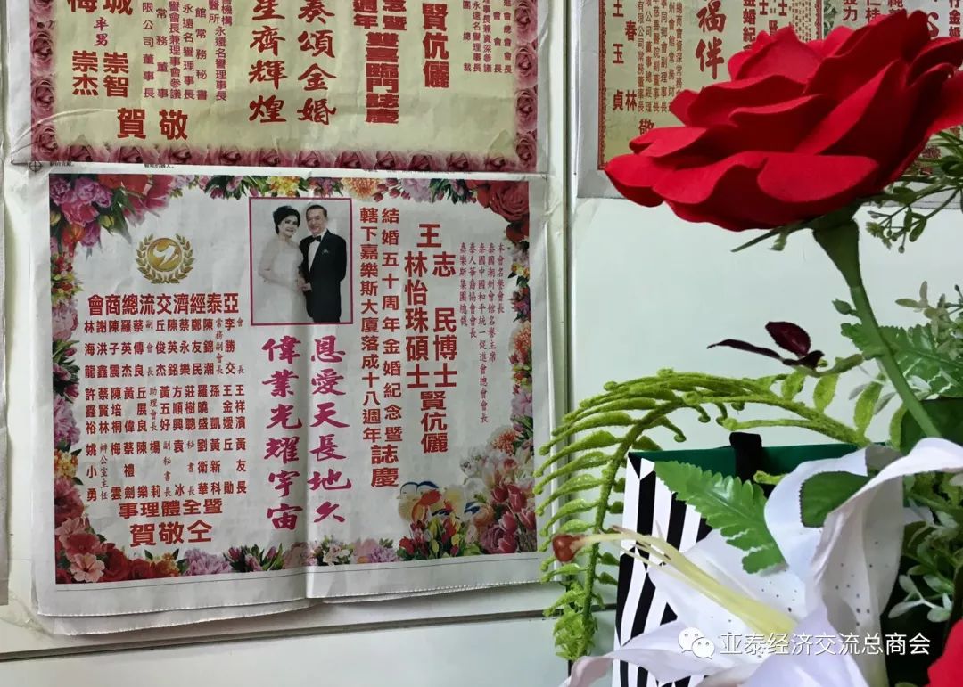 本会副会长王祥滨、王金媛贤伉俪令尊翁令慈,本会名誉会长王志民博士、王林怡珠硕士贤伉俪结婚五十周年金婚纪念暨辖下嘉乐斯大厦落成十八周年双喜庆典,2019年4月21日(星期日)上午,在泰京拍喃三路嘉乐斯大厦大堂隆重举行。