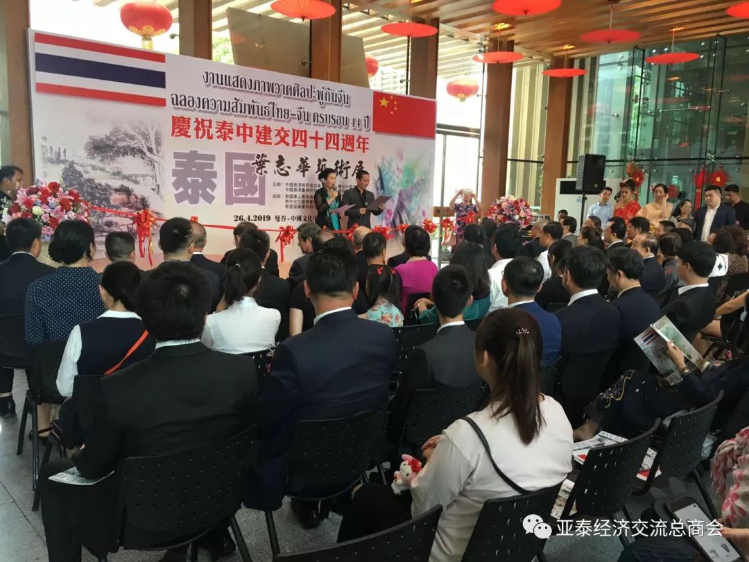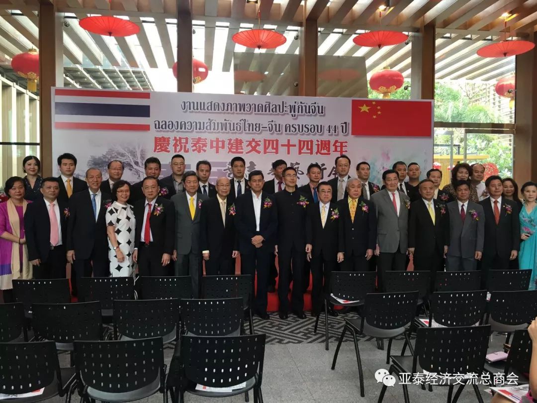 由中国香港美术家协会、中国香港画学研究会主办;泰国华人青年商会、泰中文化产业集团、泰星盛集团有限公司协办的“庆祝泰中建交四十四周年叶志华艺术展”,于2019年4月26日(星期六)下午三时在曼谷中国文化中心隆重举行。应主办单位的邀请,亚泰经济交流总商会会长李胜交偕同常务副会长郑友民、副会长孙凯、黄五好、副秘书长陈乐、理事林巧等出席活动,与受邀的泰中政界领导及重要侨团领导、嘉宾等一起为庆祝泰中友谊活动添砖加瓦、共襄盛举!