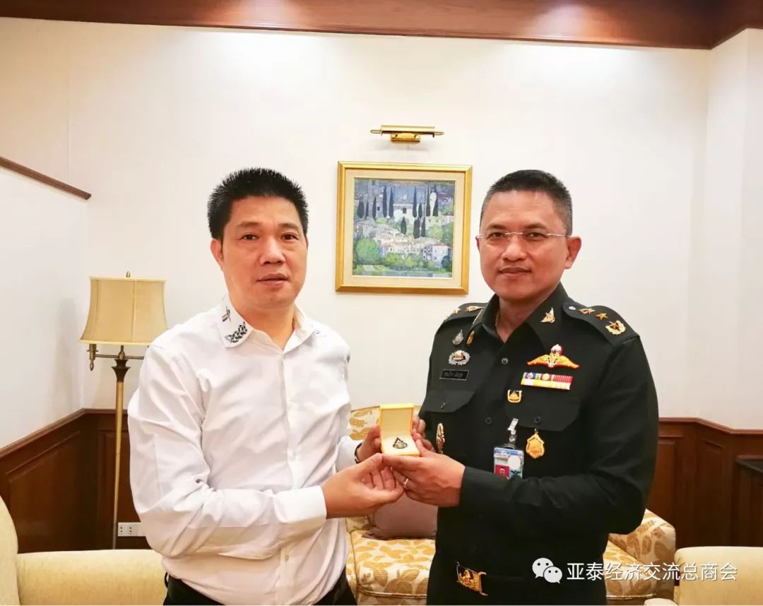 塔纳帕中将以愉快的心情表示,很高兴再次见到三位好朋友前来相聚叙谈,十分赞赏李会长及各位同仁的办会精神和努力!同时鼓励大家要精诚团结合作,迎合时代发展潮流,携手打造一个崭新面貌的商会,为促进泰中及亚洲各国经济交流往来做出积极的贡献!
