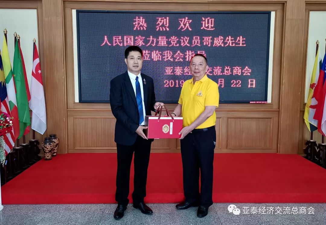 适逢泰国人民国家力量党议员哥威先生莅临本会视察,受到李胜交会长及各位副会长、理事热情迎接,并邀请他以嘉宾身份,列席本会前段会议。