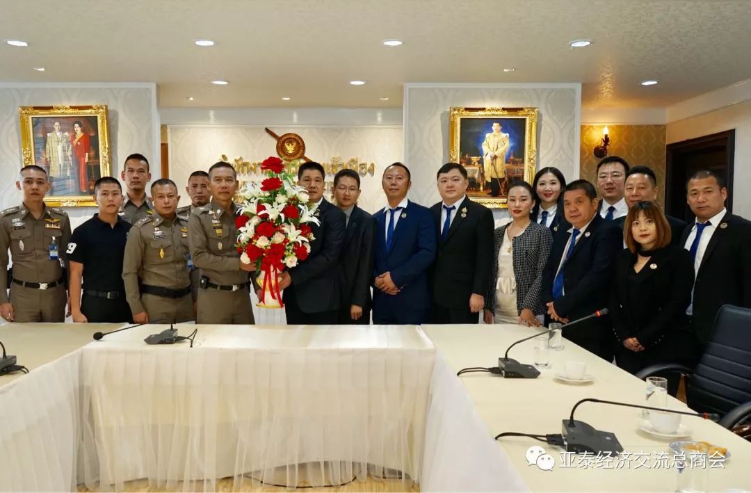 2019年6月10日(星期一)上午,亚泰经济交流总商会会长李胜交偕同常务副会长陈锦潮,副会长罗英杰、孙凯、黄五好,秘书长袁冰,会长助理黄伟、姚小勇,副秘书长杨莉、陈乐,常务理事蔡礼剑一行,赴泰国移民总局,向新任移民总局局长颂蓬·清端警中将敬献鲜花,热烈祝贺他在新的领导岗位上施展才华,再立新功!