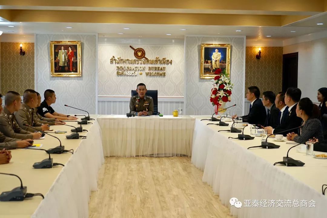 颂蓬警中将在讲话中,预祝亚泰经济交流总商会将于今年7月中旬举办的成立就职典礼圆满成功!他接着说,自己接任泰国移民总局局长职务不久,手头还有甚多警务改革计划急需处理,故无法抽出太多的时间来接待民间团体,还望大家能够理解体谅!最后宾主合影,留下珍贵而富有意义的镜头。