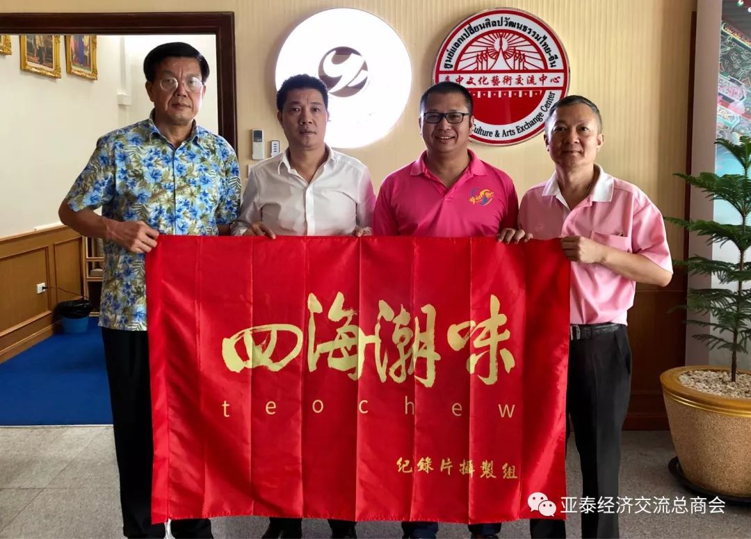 杨经纬副会长简述此次莅泰的主要任务是"潮人闯世界、文化传五洲"全球潮团潮人走访活动的一个重要环节,旨在交流社团经验,沟通协作机制,探寻潮商财富密码,实现资源共享,共同发展。同时,率领四海潮味摄制组先头小分队到泰国,实地考察调研泰国潮汕餐饮美食业,为纪录片的拍摄收集资料素材。感谢李会长和丘会长助理、蔡会长助理的大力支持协助,期望双方今后保持联络互动,共同努力奋斗。